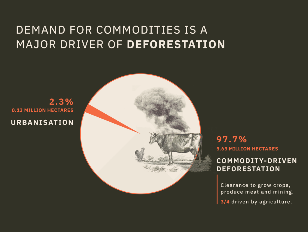Demand for commodities such as beef, oilseeds such as soy and palm oil, and products made from timber, are among the top drivers of global deforestation.