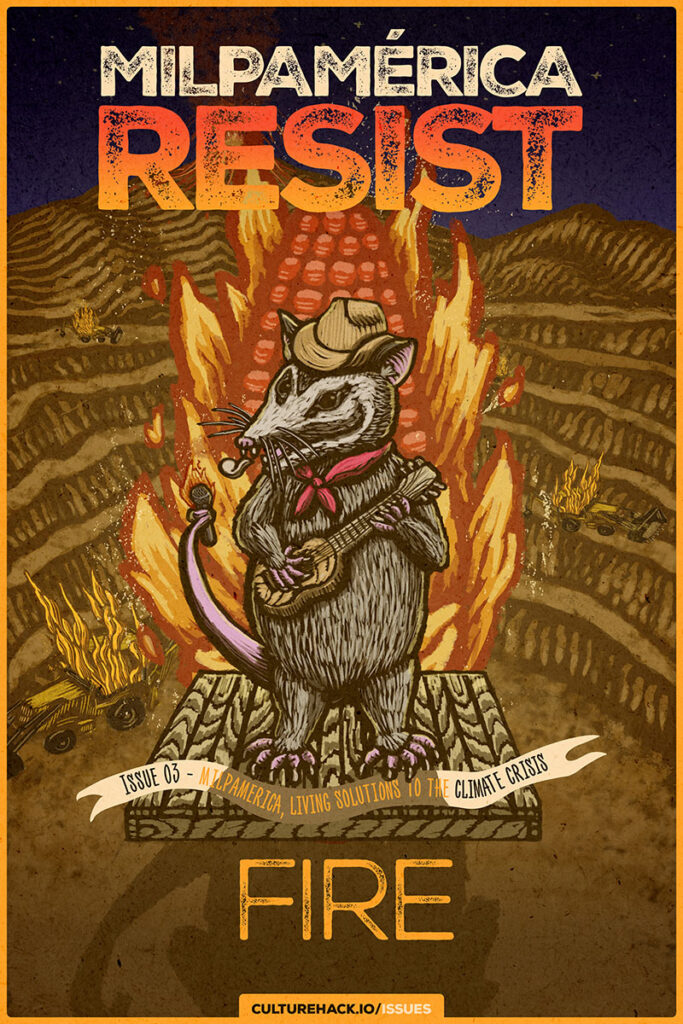 Through the Milpamérica Resists process and from Grupo Fuego we are hacking this colonial system: we speak, tell, write, know, decode and create from an array of collectivized tools that help us strengthen our spaces of organized struggle and resistance both in the physical and virtual plane. We send out a call: all spaces are also trenches we need to occupy and reclaim, that this is our ancestral calling as diverse people, sexual dissidents, women, children and youth from the Native peoples and from marginalized neighborhoods in resistance.